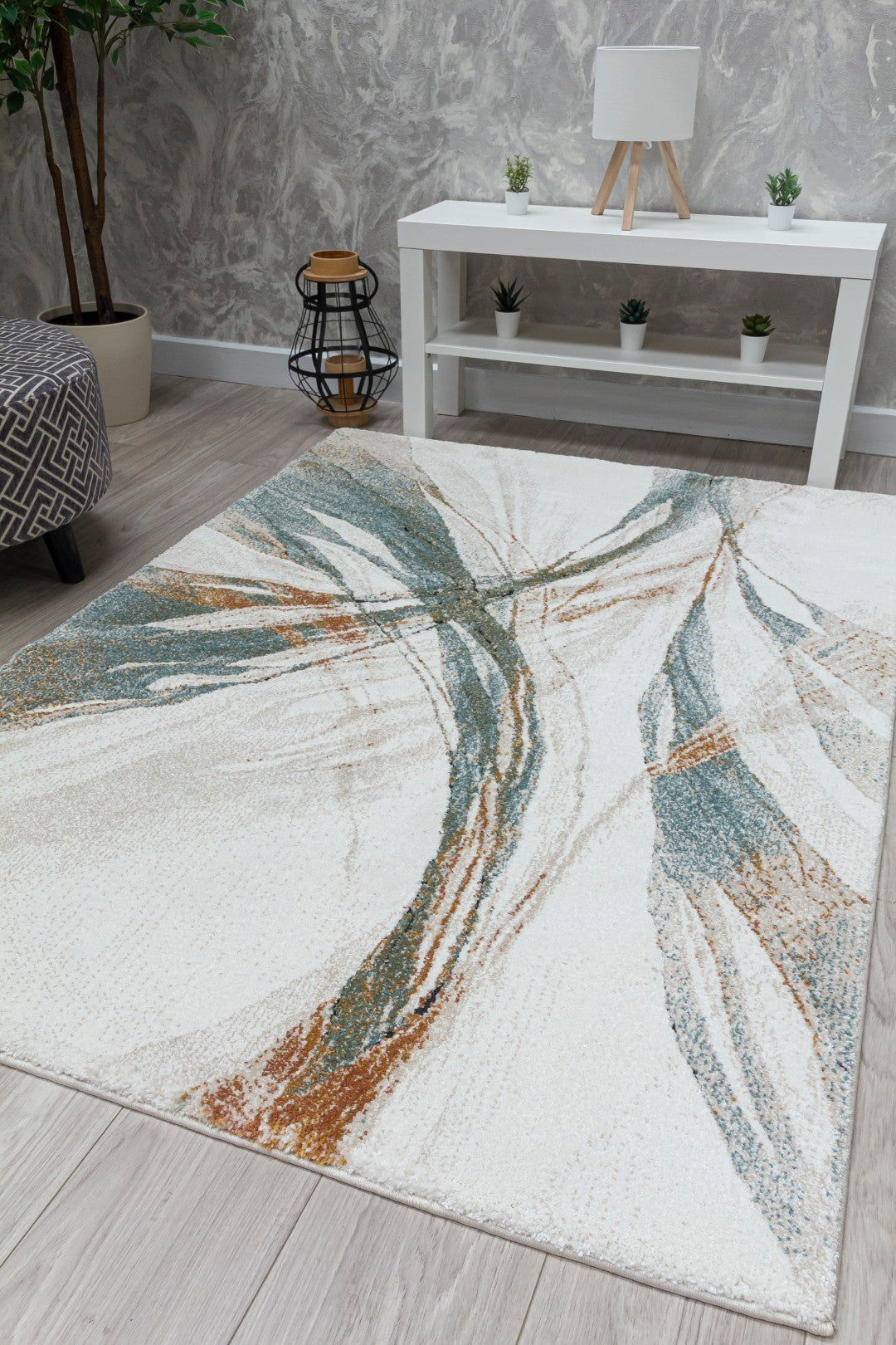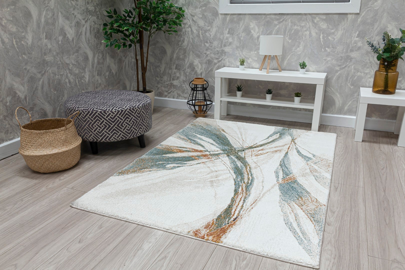 Modern Design Heavy rug with jute backing.