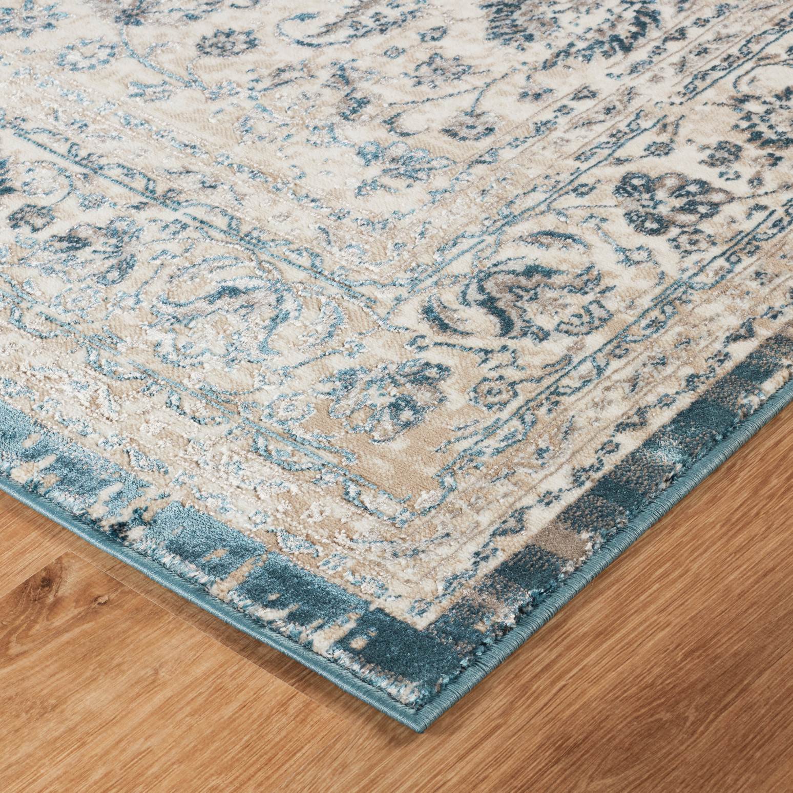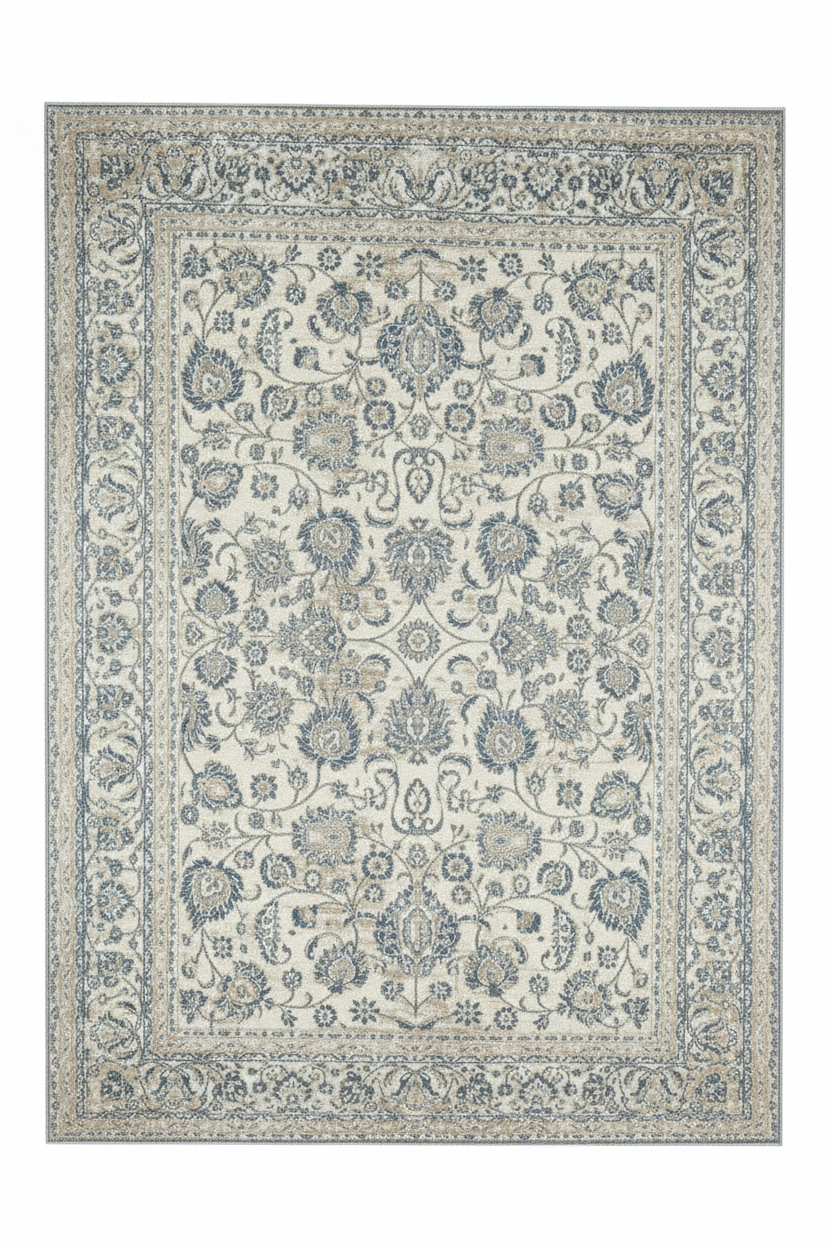 Traditional style polyester rug with short fringe . Soft touch 8mm high pile