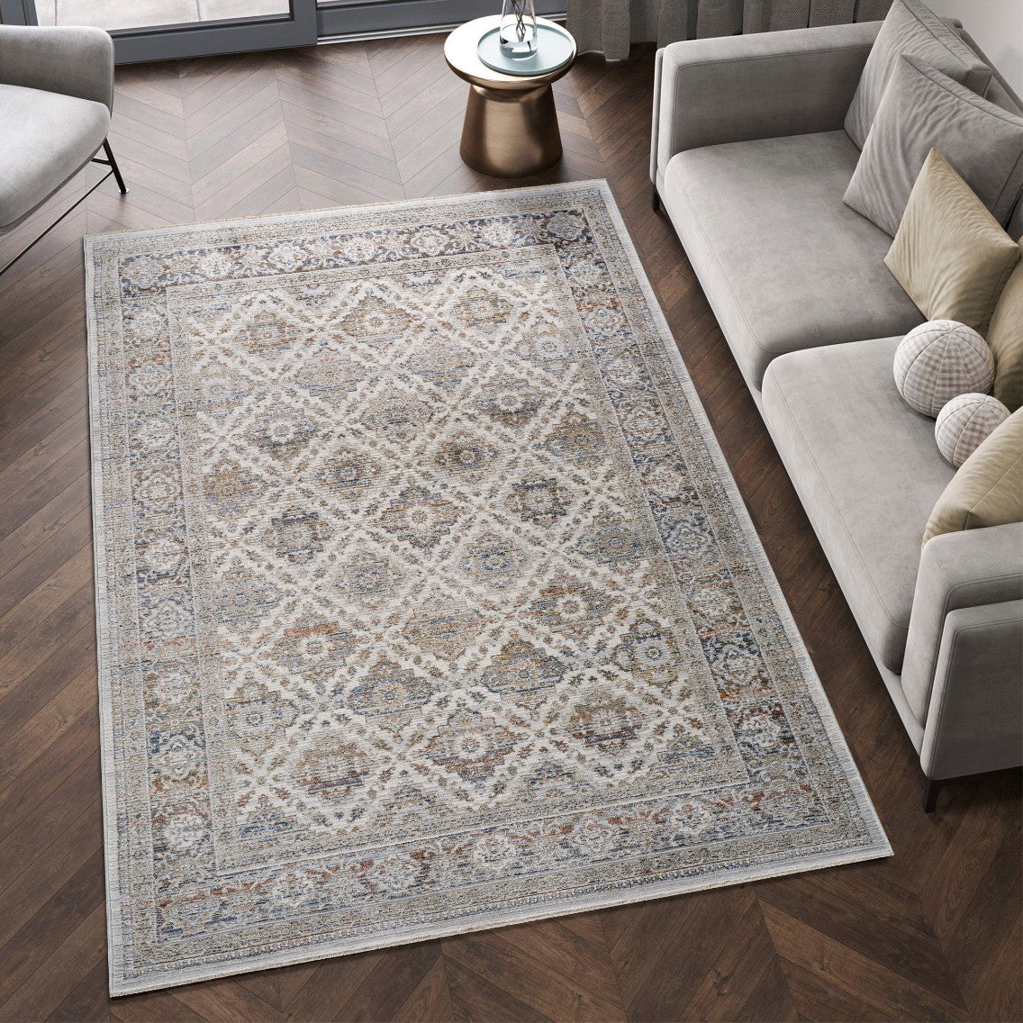 Traditional style polypropylene rug with short fringe . Soft touch 7mm high pile