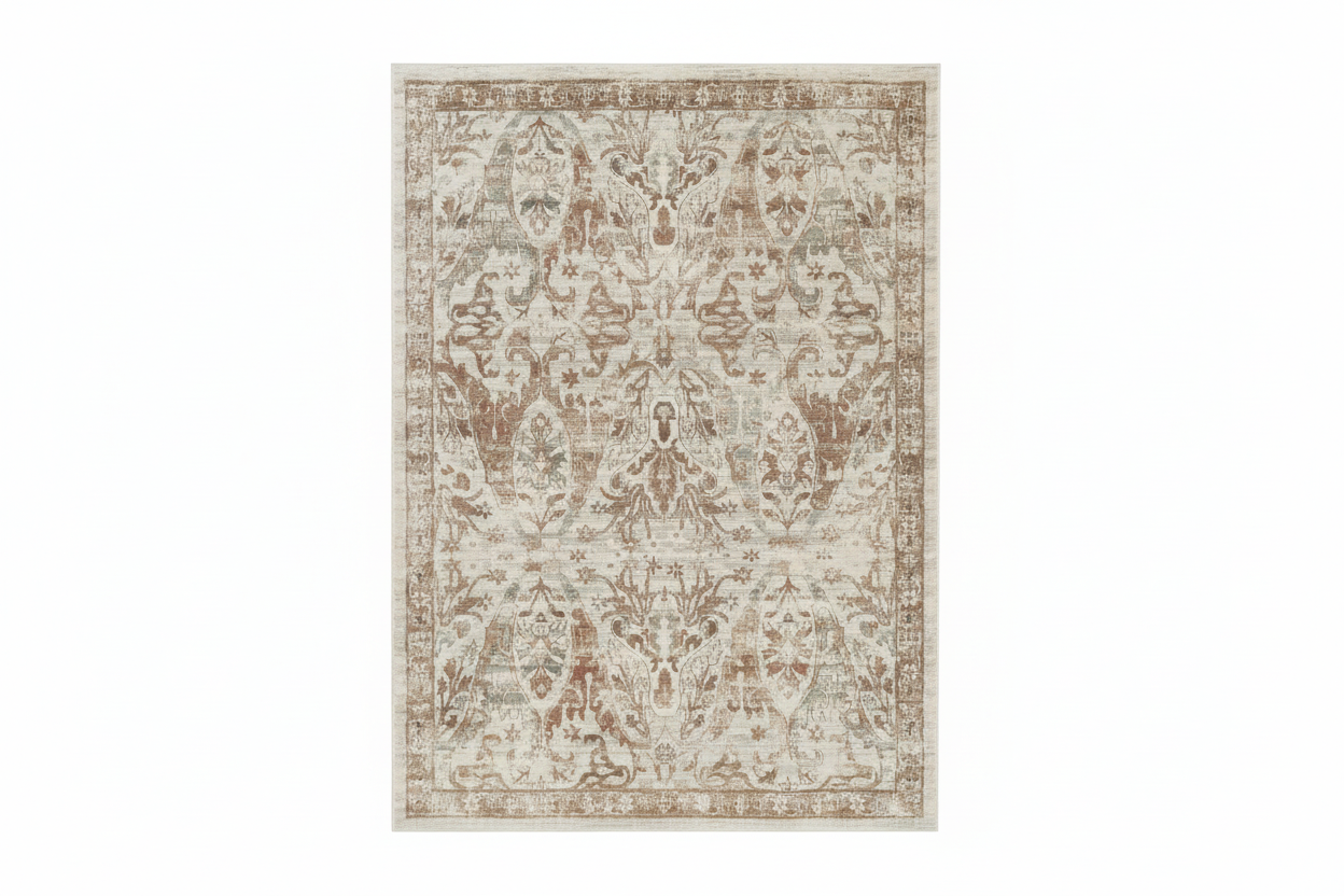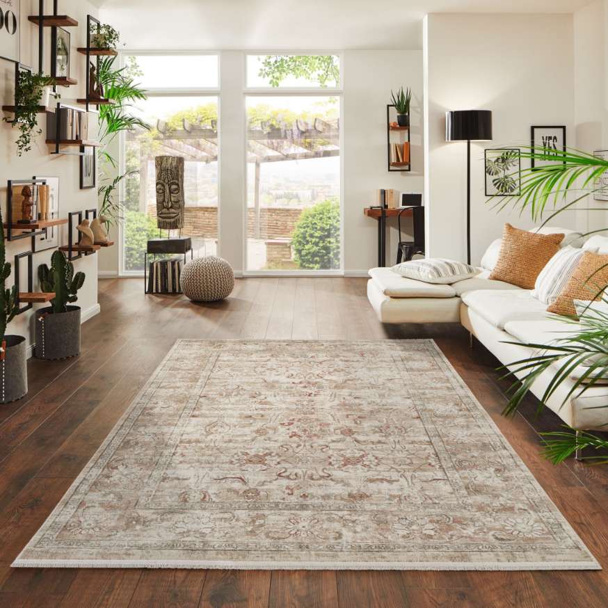 A beautiful compilation of autumnal colours in this rug will add warmth to a room.