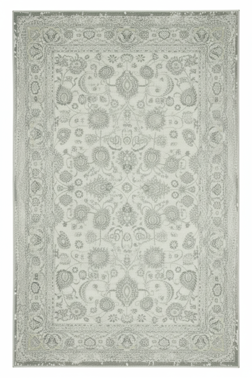 Traditional style polyester rug with short fringe . Soft touch 8mm high pile